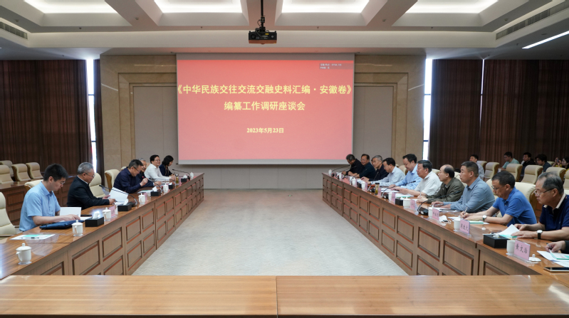 本网讯(融媒体中心 周仲寅)5月23日上午,《中华民族交往交流交融史料汇编·安徽卷》编纂工作调研座谈会在我校磬苑校区材料科学大楼一楼会议室召开。国家民委专职委员孙学玉主持会议,安徽省委常委、省委统战部部长张西明出席。校党委书记蔡敬民,国家民委理论研究司副司长张世保,省民委主任、统战部副部长时先政,校党委常委、副校长、统战部部长黄志祥,安徽省社会科学院原院长陆勤毅,以及国家民委、安徽省民委有关部门负责同志和我校有关专家学者参加座谈会。