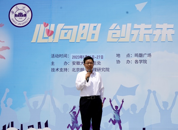 周飞讲话并宣布活动开幕。他说,学校历来高度重视心理健康教育工作,在硬件建设、软件升级、工作规划、经费保障等各方面持续投入,将心理健康教育融入人才培养的全过程,营造了“人人关注心理,人人注重健康”的浓厚心理育人氛围,构建了“学校-学院-班级-宿舍”四级心理健康教育体系,形成了教育教学、实践活动、咨询服务、预防干预、智能管理“五位一体”心理健康工作格局。他提出三点希望和要求与大家共勉,要珍爱生命,拥抱阳光;要保持歌唱的姿态,保持运动的活力;要把身心聚焦到主业上,勤奋学习,刻苦钻研,为中华民族伟大复兴贡献自己的力量!