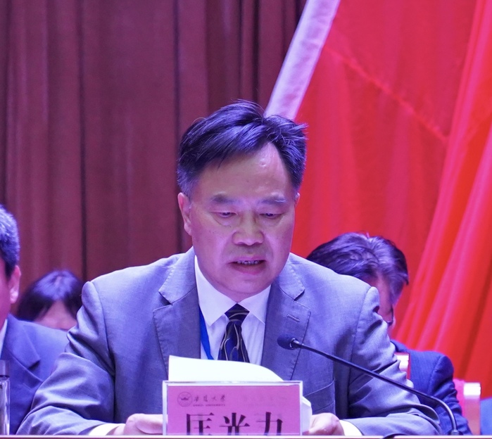 本网讯(宗禾)6月7日下午,安徽大学第九届教职工代表大会暨第十二届工会会员代表大会第二次会议举行闭幕会。校党委书记蔡敬民主持并发表讲话,校长匡光力宣读《关于表彰优秀提案及提案工作先进代表团的决定》和《关于表彰2021-2022年度工会系统先进集体及个人的决定》。校领导,党委常委,代表团团长,教执委主任、副主任、秘书长、副秘书长,工会委员会主席、副主席出席会议并在主席台就坐。安徽大学第九届教代会暨第十二届工代会正式代表出席会议,列席代表列席。