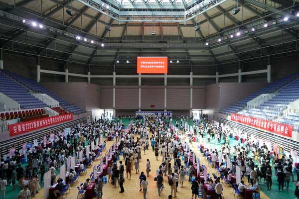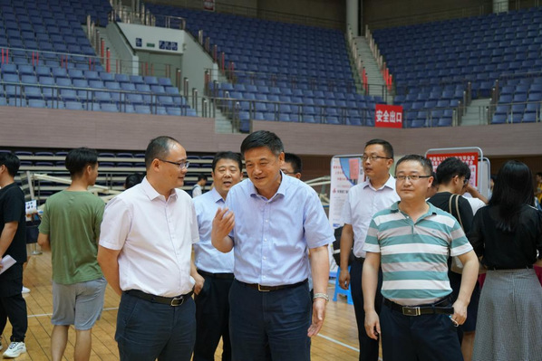 本网讯(融媒体中心 蔡丽丽 马方彤)6月10日下午,安徽省国有企业夏季专场招聘会在磬苑校区体育馆举办,本次活动由安徽省国资委、安徽省教育厅、安徽省人力资源和社会保障厅主办,安徽大学承办。校党委常委、副校长高清维,省大中专毕业生就业指导中心主任张秋田,省人社厅就业失业处处长唐晓峰,省人才服务中心主任吴传华,省国资委考核分配处副处长刘森等巡看现场,并指导招聘工作。