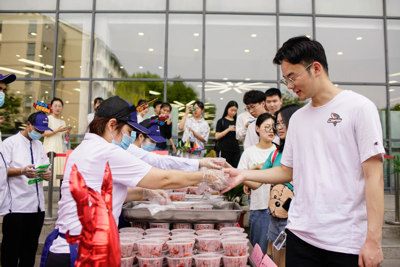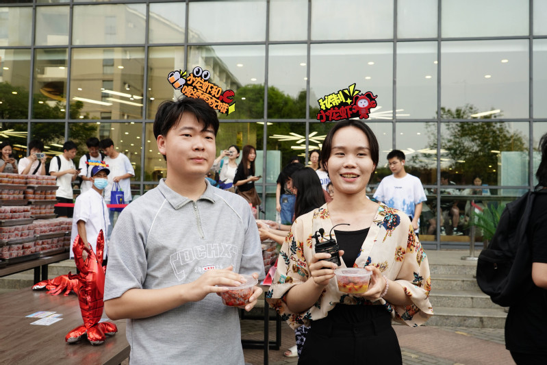龙虾节现场气氛活跃。师生们纷纷表示,又能玩游戏又能免费吃小龙虾,特别开心。