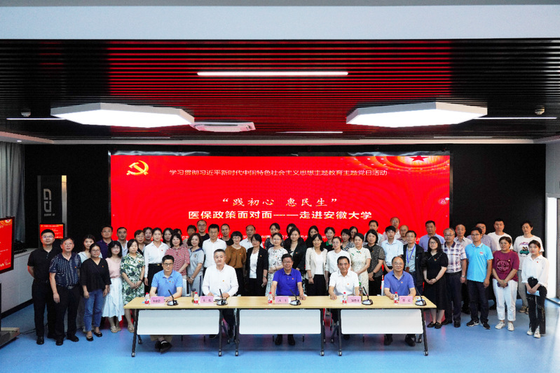 本网讯(校医院 卫轩)6月20日下午,校医院直属党支部会同校网络思政中心、研究生院、学生处、人事处、财务处党支部,联合省市医保部门党支部开展“践初心、惠民生 医保政策面对面”主题党日活动。校党委常委、副校长周飞,省医保局二级巡视员郑贤功出席。
