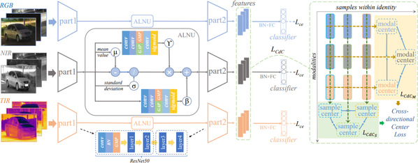 本网讯(人工智能学院)针对多光谱车辆重识别中,不同模态、视角和身份的异质性导致的跨模态差异问题,我校郑爱华副教授团队构建了一个高质量的多光谱车辆数据集,提出了一个新颖的跨方向一致性网络,通过约束模态中心距离和样本中心距离的方式克服模态与样本差异性,并提出自适应层归一化进一步缓解模态差异,提升多光谱车辆重识别性能。该方法克服了多光谱车辆重识别的模态差异和类内差异,优化了多模态特征分布,从而达到更好的多光谱车辆重识别性能;并且相比现有工作贡献了一个更大规模的高质量数据集。