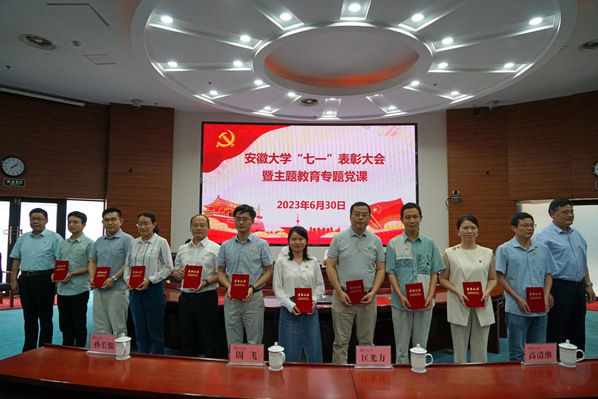 高清维宣读《关于表彰优秀共产党员、优秀党务工作者和先进基层党组织的决定》;孙长银、黄志祥、赵晓明为优秀共产党员代表颁奖,周飞、高清维为优秀党务工作者代表颁奖,蔡敬民、匡光力为先进基层党组织负责人代表颁奖。