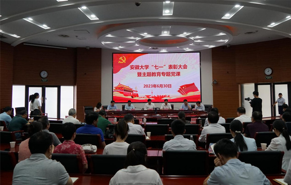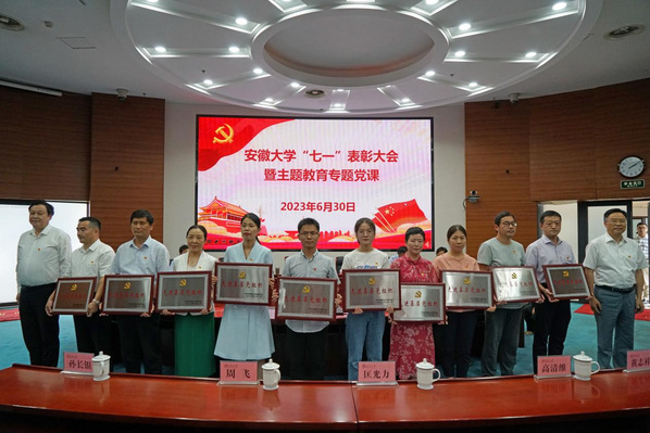 本网讯(融媒体中心 蔡丽丽 马方彤) 6月30日下午,学校在磬苑校区办公楼B204会议室举行庆祝中国共产党成立102周年“七一”表彰大会暨主题教育专题党课报告会。校党委书记蔡敬民,校长匡光力,校党委常委、副校长周飞、高清维、孙长银、王守国、黄志祥,校党委常委、党委宣传部部长赵晓明出席活动并为受表彰代表颁奖。会议由匡光力主持。受表彰的优秀共产党员代表、优秀党务工作者代表、先进基层党组织负责人代表,校党委委员,党委部门主要负责同志和党员代表等出席活动。