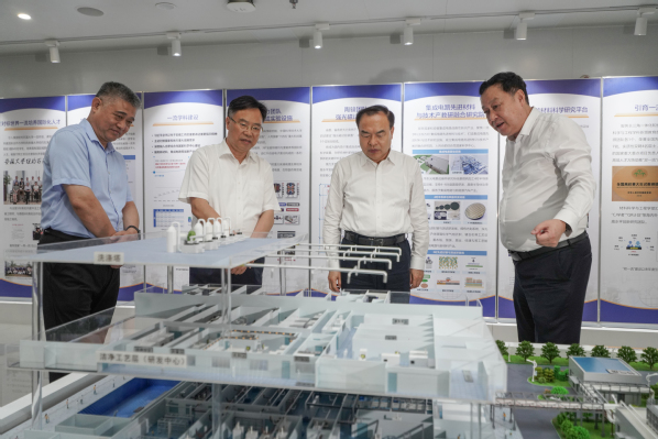 调研期间,唐良智参观了学校“双一流”建设成果展。蔡敬民详细介绍了学校历史沿革、学科发展、人才队伍、科研创新、成果转化等方面情况。唐良智表示,安徽大学作为省属高校的排头兵、领头雁,多年来坚持立德树人根本任务,科技创新实力不断增强,社会服务能力不断提升,特别是“双一流”建设以来,取得了一批一流成果,为区域经济社会发展贡献了重要力量。他希望学校继续深入推进“双一流”建设,努力培养更多优秀人才,产出更多成果,为全面建设现代化美好安徽提供强劲动能。
