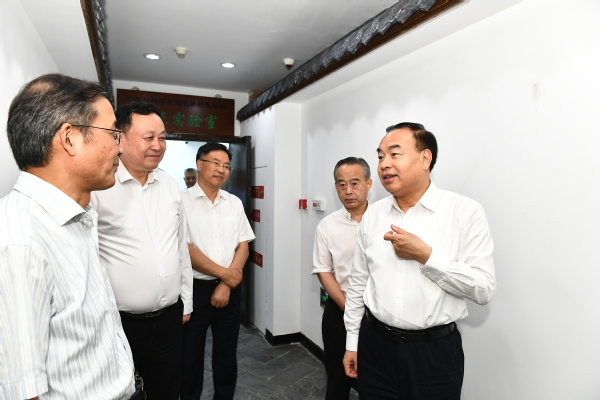 作为教育部批准的首批十五个普通高等学校人文社会科学重点研究基地之一,安徽大学徽学研究中心始终扎实推进徽学基础研究和学科建设,并积极为安徽省文化强省建设提供决策支持和智力服务。唐良智听取了徽学研究中心的工作汇报,察看了徽州文书陈列室,参观了研究成果展。唐良智指出,徽文化是中华优秀传统文化的瑰宝,要深化挖掘和研究工作,不断推动徽文化创造性转化、创新性发展,为打造创新型文化强省注入新动能。