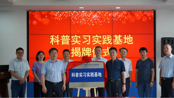 会上,方波和田明亮分别代表馆院双方签署共建科普实习实践基地协议,孙长银代表学校为科普实习实践基地揭牌。会后,方波一行参观了安徽大学校史馆、中国物理学会科普教育基地。