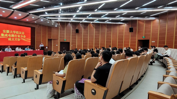 本网讯(集成电路学院 张姚 李嘉霖)7月29日,安徽大学校友会集成电路行业分会成立大会在磬苑校区文典阁报告厅举行。校党委常委、副校长、校友会常务副会长周飞出席并讲话。第一届理事会第一次会议选举产生了会长、副会长、秘书长,决定了副秘书长和名誉会长。宏晶微电子科技股份有限公司董事长刘伟当选会长,安徽大学集成电路学院院长吴秀龙当选常务副会长兼秘书长,刘琦、汪晓煜、陈丙根、周义亮、徐骅、魏敬和当选副会长,徐春叶、汪桃红、彭春雨、孟少鹏为副秘书长,陈军宁、洪一为名誉会长。