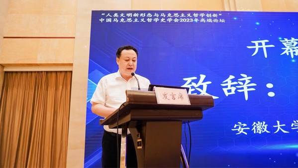 本网讯(马克思主义学院 左路平)中国马克思主义哲学史学会于2023年7月29日至31日在安徽省合肥市主办“人类文明新形态与马克思主义哲学创新”论坛。此次论坛由安徽大学马克思主义学院承办,学者们围绕会议核心主题“人类文明新形态”“中国式现代化”“马克思主义哲学创新”贡献了思想观点和理论智慧。来自中共中央党校、中国社会科学院、上海市委党校、北京市社会科学院、北京大学、中国人民大学、复旦大学、南京大学、中山大学、武汉大学、苏州大学、西南大学、北京工业大学、上海对外经贸大学、云南大学、合肥工业大学、华侨大学、安徽大学等党校、社科院、高校的专家学者100余人参加。