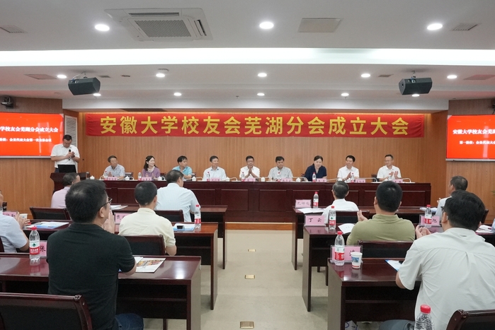 本网讯(校友会)8月5日,安徽大学校友会芜湖分会成立大会和安徽大学“校友之家”揭牌仪式在芜湖市委党校举行。校党委常委、副校长、校友会常务副会长周飞出席并讲话。会议审议通过《安徽大学校友会芜湖分会第一届理事会选举办法(草案)》,选举产生了第一届常务理事会成员,邬余俊当选为首届理事会会长,邵涛、徐舜为副会长,何江平为秘书长,会议推举吕向东担任校友会首任名誉会长。