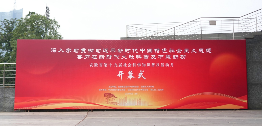 本网讯(人文社会科学处 操礼和 方兴)9月3日,以“深入学习贯彻习近平新时代中国特色社会主义思想,奋力在新时代大社科普及中建新功”为主题的安徽省第十九届社会科学知识普及活动月开幕式在合肥市举行。省委常委、市委书记虞爱华,省委常委、省委宣传部部长、省社科联主席陈舜等出席,省人大常委会副主任、党组成员韩军,省政协副主席马传喜,省政府副秘书长、一级巡视员汪春明出席,省社科联党组书记、常务副主席李兵主持开幕式,合肥市委常委、市委秘书长、市委宣传部部长单虎致辞。开幕式由省社科联和合肥市人民政府联合主办。活动现场,16个市以及部分高校和社会团体带来了各具特色的社科普及展品,包括地方文创产品、社科书籍等,向大众讲解、普及社科知识。安徽大学社科联喜获2023年度全省社科普及工作先进单位。