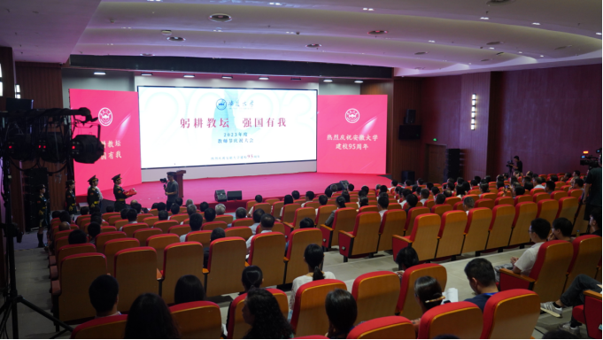 在第十届李世雄奖教金获得者陆发春教授的领誓下,教师代表重温从教誓词,新教师代表杨鹿君发言。与会人员集体观看了2023年度教师节主题影片《师者如光 微以致远》,合唱《安徽大学校歌》。各单位党政主要负责人等在现场参加大会。学校各部门、学院组织师生员工收听收看大会实况直播。