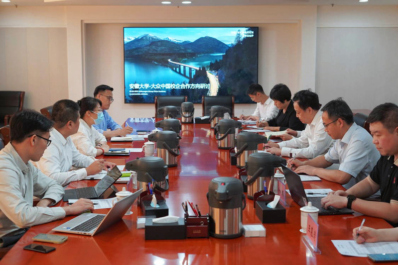 本网讯(融媒体中心 岳怡涛)9月14日下午,校党委书记蔡敬民在磬苑校区办公楼A801会议室会见来访的大众汽车集团(中国)学习与发展中心、企业文化和员工沟通高级总监娄屹一行。双方围绕安徽大学—大众中国人才培养、校企合作、产教融合等方面进行了研讨。