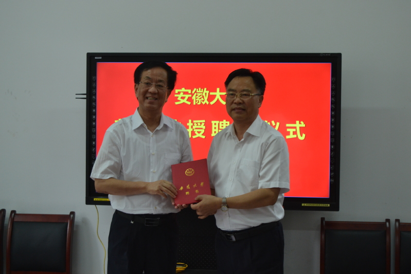 本网讯(哲学学院 陈卓 王乐凡)9月15下午,北京师范大学哲学系杨耕教授聘任仪式在龙河校区举行,聘任仪式由校长匡光力主持。匡光力(右)向杨耕教授(左)颁发聘书聘任仪式上,匡光力校长首先代表学校对杨耕教授的加入表示热烈欢迎。匡光力指出,杨耕教授的加入对推进学校人才培养,学科建设有重要意义。杨耕教授回忆了自己在安徽大学求学期间的经历,并对哲学学院的学科建设工作提出宝贵意见建议。