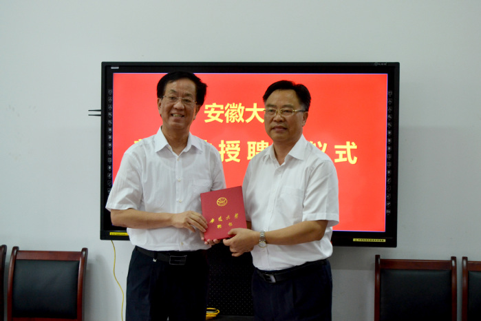 本网讯(哲学学院 陈卓 王乐凡)9月15下午,学校在龙河校区教东212教室举办兼职教授聘任仪式,聘请北京师范大学杨耕教授为我校兼职教授。聘任仪式由校长匡光力主持。