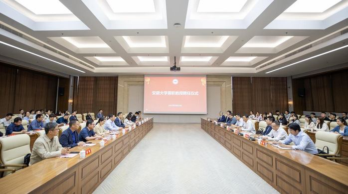 本网讯(融媒体中心 江旭)9月24日,我校兼职教授聘任仪式在磬苑校区材料科学大楼A101会议室举行。校长匡光力出席致辞并为兼职教授颁发聘书,安徽省委宣传部副部长、省政府新闻办公室主任郑明武出席并讲话。校党委常委、宣传部部长赵晓明主持仪式。