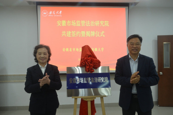 会上,陈睿与高清维代表双方签订共建“安徽市场监管法治研究院”框架协议,韩永生与匡光力共同为“安徽市场监管法治研究院”揭牌。