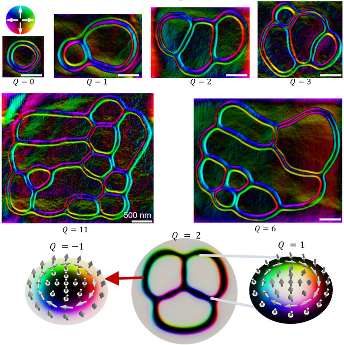 磁斯格明子是一类涡旋状拓扑磁结构,是新一代拓扑自旋电子学器件的理想信息载体。斯格明子丰富的电学磁学特性源于其独特的拓扑性,称之为磁拓扑荷。然而,斯格明子的拓扑荷是一个固定序参量1。斯格明子束缚态(也称磁束子)是一个闭合螺磁畴包围多个斯格明子组合体的复杂拓扑磁结构,具有任意整数拓扑荷等特点,能够大大拓展拓扑自旋电子学器件信息载体库,进一步开发基于拓扑荷自由度的新型自旋电子学器件,如霍尔天平赛道存储、多重信息编码和数据分箱器件等。然而,复杂磁束子的不同单元对外磁场需求条件不一致,实验实现是巨大挑战。