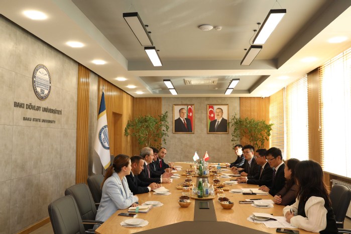 在阿塞拜疆期间,周飞分别与阿塞拜疆巴库国立大学校长耶律钦·巴巴耶夫和私立里海大学董事长哈姆雷特·伊萨汗力、校长伊拉达·卡里洛娃举行会谈。周飞介绍了安徽大学办学情况特别是近年来“双一流”建设成就,并与耶律钦·巴巴耶夫就巴库国立大学孔子学院管理、两校合作开展“2+2”办学、安徽大学协助该校提升汉语教育质量达成了共识。哈姆雷特·伊萨汗力、伊拉达·卡里洛娃对我校对接地方产业发展以及在材料学科、人工智能研究方面的成就十分赞赏,表达了加强合作的强烈愿望。周飞和中国驻阿大使郭敏女士还共同出席了里海大学“中国文化开放日”和孔子课堂开设揭牌仪式,郭敏高度肯定了我校支持孔子学院开展的卓有成效工作。周飞出席了巴库国立大学孔子学院师生见面会,会见了阿塞拜疆著名汉学家拉沙德·哈利莫夫教授。