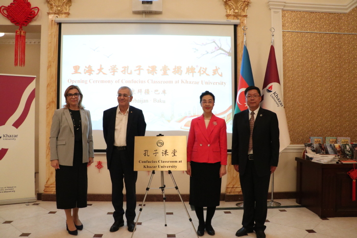 周飞和中国驻阿大使郭敏共同出席里海大学“中国文化开放日”和孔子课堂开设揭牌仪式