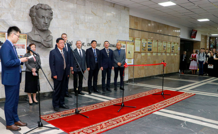 地处白俄罗斯最西部布列斯特国立普希金大学是周飞访问的最后一站。周飞在该校校长尤里·戈鲁别夫、副校长亚历山大等全程陪同下出席安徽大学校史展开展仪式,考察布列斯特大学外语学院汉学专业,看望布列斯特大学孔子学院师生,与戈鲁别夫、亚历山大和布列斯特州教育厅副厅长查诺娃·塔季扬娜·阿纳托列芙娜举行会谈。周飞介绍了安徽省作为布列斯特友好省州的经济社会发展情况和产业特点以及安徽大学近年发展情况,戈鲁别夫表示将全力以赴支持布列斯特国立普希金大学孔子学院建设,希望大力推动两校师生文艺交流、开展“2+2”合作办学、帮助更多的师生前往安徽大学深造和开展科学研究等。查诺娃·塔季扬娜·阿纳托列芙娜高度肯定由孔院教师承担的该州中小学汉语教学质量。