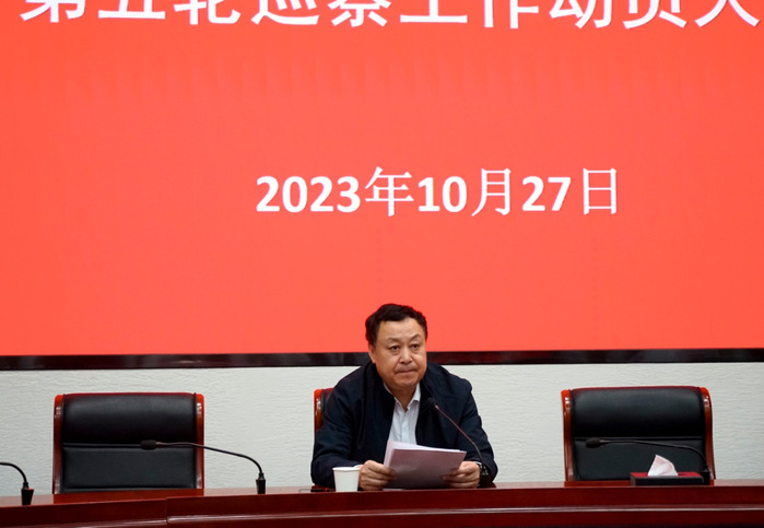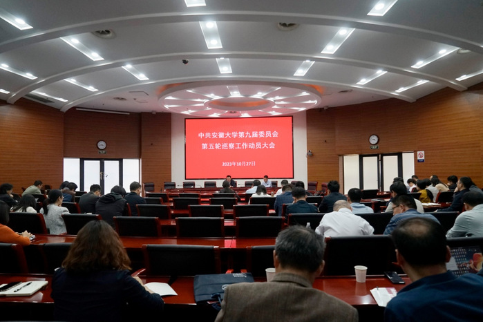 本网讯(校党委巡察办公室)10月27日下午,中共安徽大学第九届委员会第五轮巡察工作动员大会在磬苑校区办公楼B204会议室召开。校党委书记、校党委巡察工作领导小组组长蔡敬民出席会议并作动员讲话,强调要以强烈的政治责任感和使命感履职担当,做好巡察工作,奋力推进全面从严治党向纵深发展,为学校“双一流”建设和转型重塑,提供坚强的政治保障。