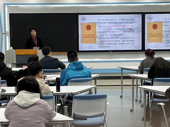 程雁雷从中华优秀传统文化的角度指出贯彻实施《国家通用语言文字法》对增强民族文化自信、维护国家安全统一、弘扬社会主义核心价值观、全面落实依法治国战略、实现中华民族伟大复兴的重大意义;结合自身教育教学和科学研究工作,阐述了如何准确把握国家通用语言文字法的核心要义,详细解读了《国家通用语言文字法》的条款及其内涵;结合新时代高等教育理念和课程思政具体要求,对关注大学生语言文字应用能力、高校教师语言文字教育教学能力提出明确要求;并强调高校语言文字规范化和校园文化建设的重要性。