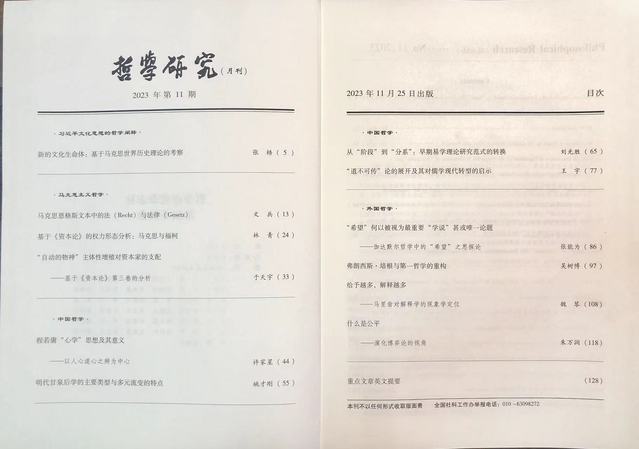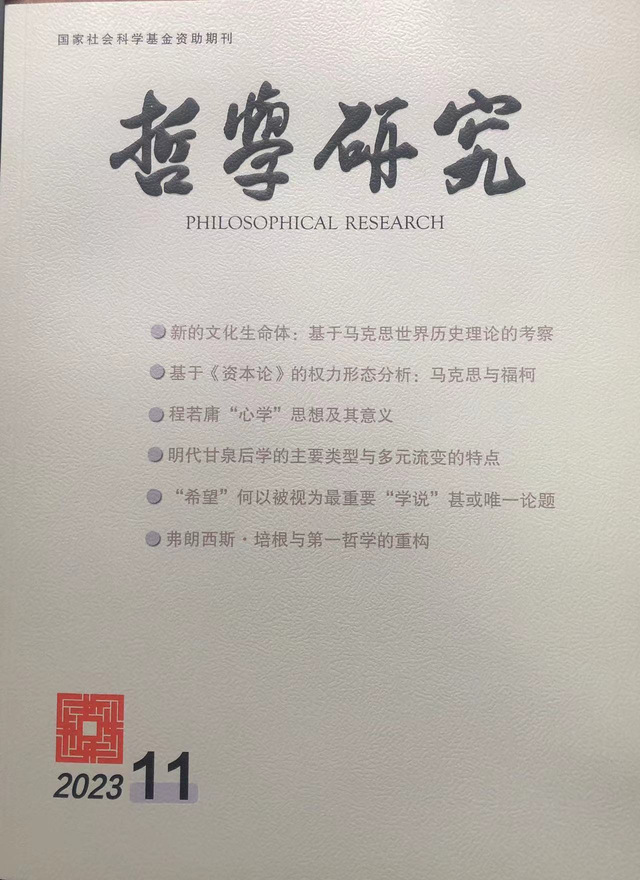 《“希望”何以被视为最重要“学说”甚或唯一论题——伽达默尔哲学中的“希望”之思探论》在《哲学研究》2023年第11期封面刊发