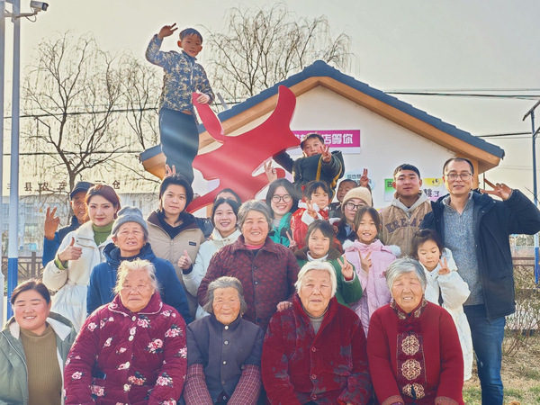 我校学生志愿者们与村民合影