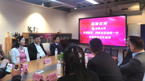 在深圳校友会秘书长陆行根等校友的陪同下,高清维参观了深圳市华节文化传播有限公司并进行座谈。座谈会上,该公司创始人、我校92级历史专业校友陆行根介绍了公司经营的基本情况和主营业务板块。高清维首先向在深校友长期以来对学校建设和发展的支持表示感谢,对校友取得的成绩表示祝贺和肯定。希望企业能与学校加强沟通交流,特别是艺术学院、新闻传播学院与企业所需人才密切相关的专业,进一步丰富校企合作内容,拓宽校企合作渠道,深化产教融合。据了解,深圳市华节文化传播有限公司一直致力于传播中华优秀传统文化,弘扬中华民族精神,成功策划并实施《我的中国节》系列文化复合品牌,包括音乐、短视频、网络电影、数字文化空间、舞台剧、纪录片等,作品被多家主流媒体大幅度报道。另外公司为中宣部港澳新闻局大型纪录片《爱在湾区》设计logo并制作主题歌曲《约定你》。