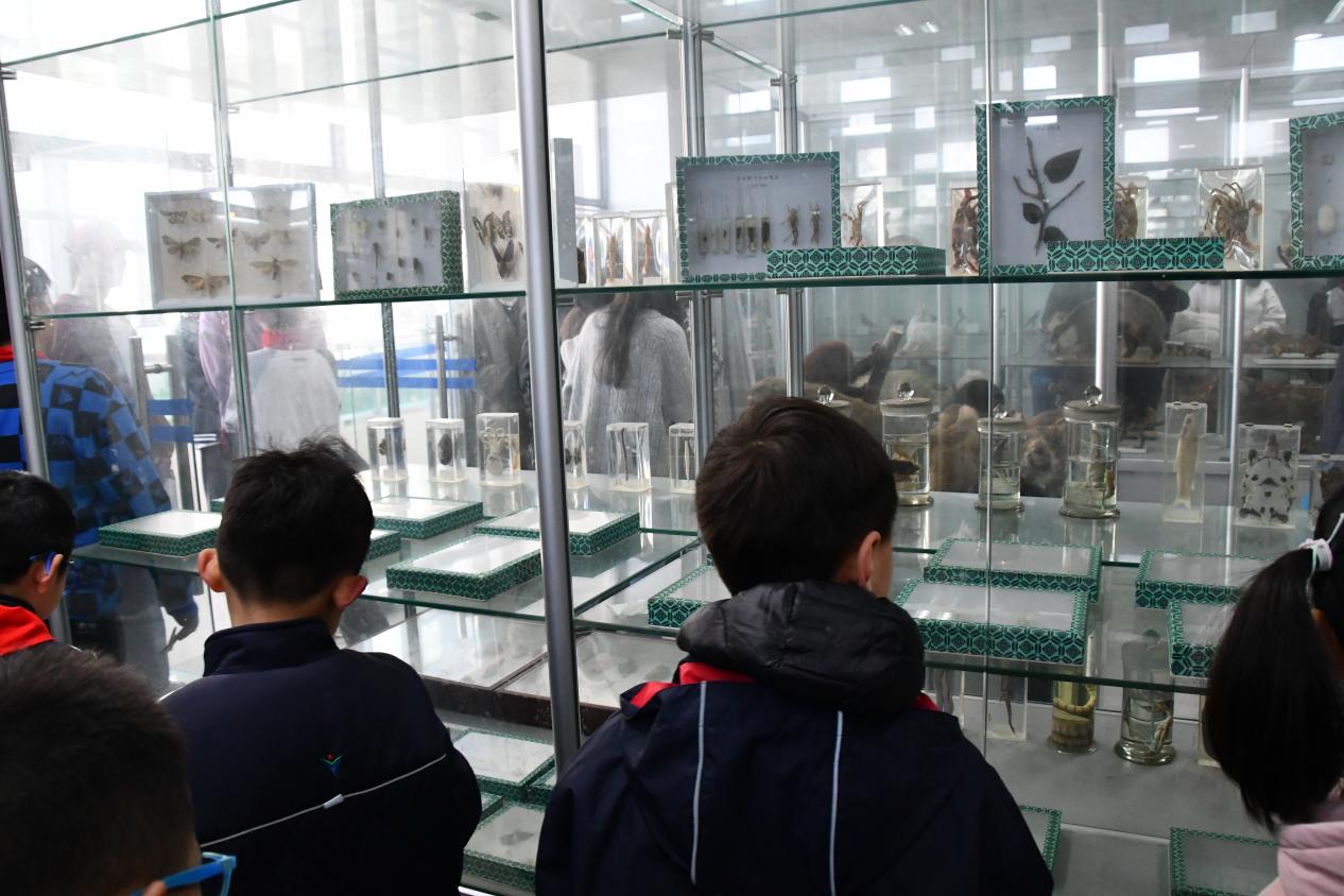 走进资源环境工程学院动物标本展厅,形状各异、栩栩如生的动物标本被精心分类并有序排列,仿佛开启了一个神秘的自然世界。小朋友们充满好奇,纷纷向志愿者提问:“这些标本是怎么制作出来的呢?”志愿者们耐心而详尽地解答,从标本的采集、精确测量,到制作过程中的每一个细节,再到长期保存的技巧,一一为孩子们揭示。在志愿者的引领下,小朋友们仿佛成为了探险家,一步步揭开这些神奇“物种密码”的神秘面纱,深刻感受着大自然的无限奥秘与魅力。