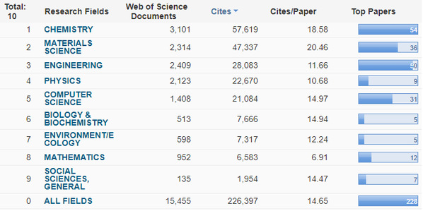 本期一般社会科学学科全球进入前1%机构2226所,我校排名2180位。到目前为止,我校已有9个ESI前1%学科,分别是化学、工程学、材料科学、计算机科学、数学、环境/生态学、物理学、生物与生物化学和一般社会科学。