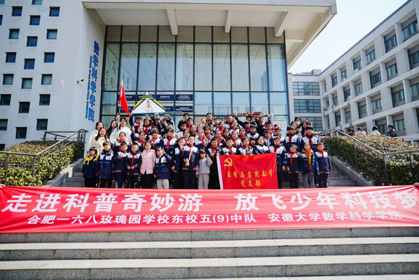 国际数学日前,数学科学学院邀请合肥市玫瑰园小学东校区五(9)中队130余名师生家长进入磬苑校区,举办了一场“走进科普奇妙游,放飞少年科技梦”的主题科普游园活动,小朋友们在科普游园活动中学习知识、体验乐趣、增进情感,在稚嫩心灵种下“科学”种子。