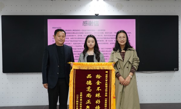 本网讯(融媒体中心 廉多日娜 叶澳华)4月2日上午,失主邓先生将一面写有“拾金不昧好榜样,品德高尚正气扬”的锦旗和一封感谢信送至安徽大学磬苑校区大数据与统计学院A507会议室。一面锦旗和一封感谢信,告诉我们这样一个拾金不昧的故事。