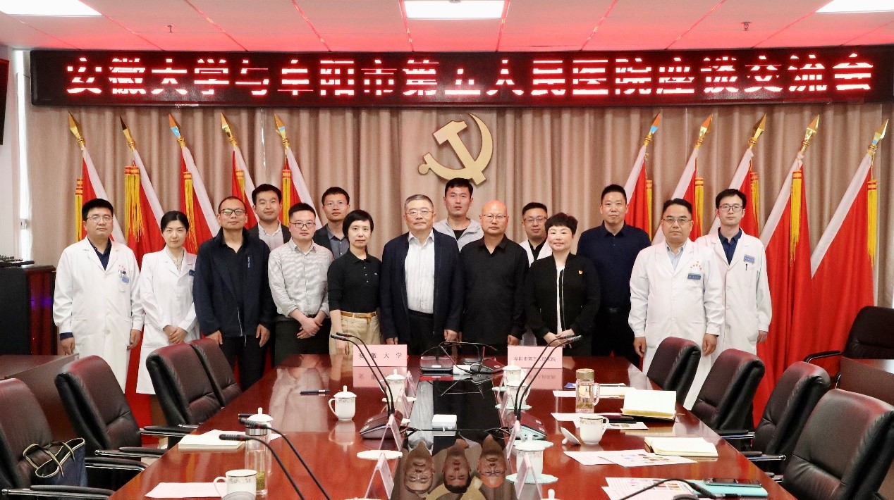 学校纪委原书记、校地合作执行委员会常务副主任王忠出席。王忠介绍了安徽大学近年来“双一流”建设和校地合作取得的成果。他表示,安徽大学学科门类齐全、实力雄厚,能够在生物医药、智慧医疗、人才培养和实习实训基地建设等多个方面同阜阳市第五人民医院开展深度合作,携手共赢高质量发展。生命科学学院院长张敏介绍了生命科学学院的办学特色和学科优势。她认为,此次战略合作能够助推学院基础研究资源与医院临床医疗资源的深度融合,有望形成一系列解决临床重大需求的科研成果。