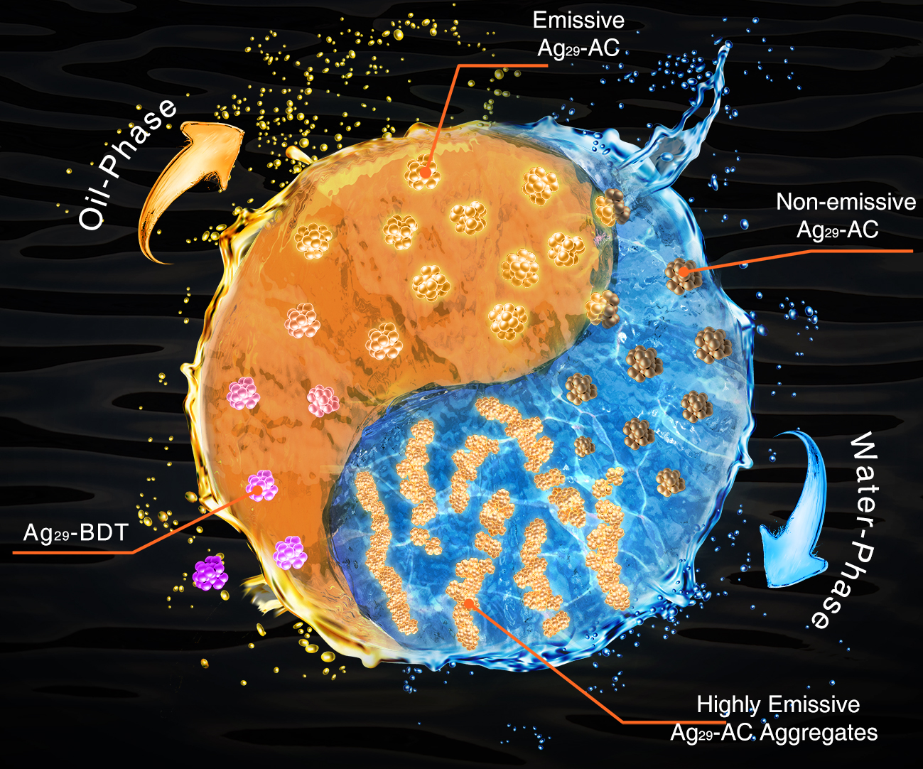 图2. Ag29纳米团簇在“油到水”相转移过程中的光学调控。