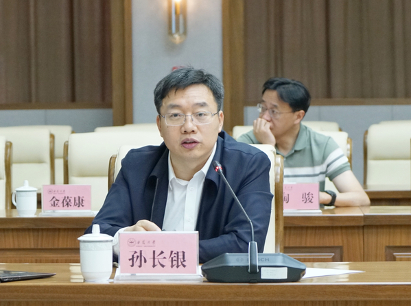 孙长银致欢迎辞,代表学校对张祥安一行的到来表示欢迎,向安庆市委、市政府长期以来对学校建设发展给予的关心和支持表示感谢,并介绍了安徽大学建设发展有关情况。他指出,安庆文化底蕴深厚、区位优势突出,希望双方进一步发挥各自优势,加强交流合作,共同推动长三角一体化发展,奋力谱写合作共赢崭新篇章。