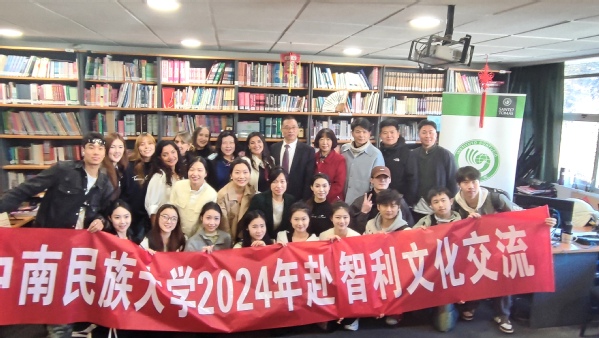 演出前,中南民族大学党委副书记副校长宋发军、国际处副处长张荔芳带队参访圣大孔院并和孔院学生交流。圣托马斯大学维市校区校长Daniel Olivares Camus、孔院中外方院长李莲和鲁正凤热情接待了访问团。院长向访问团展示了孔院的工作成果,表示圣大孔院多年来不断致力于在智利各地及周边国家传播中国语言和文化,积极寻求与当地政府企业的合作,开展的中国文化活动一直受到当地民众的热烈欢迎。访问团也对圣大孔院取得的成绩和付出的努力赞口不绝。