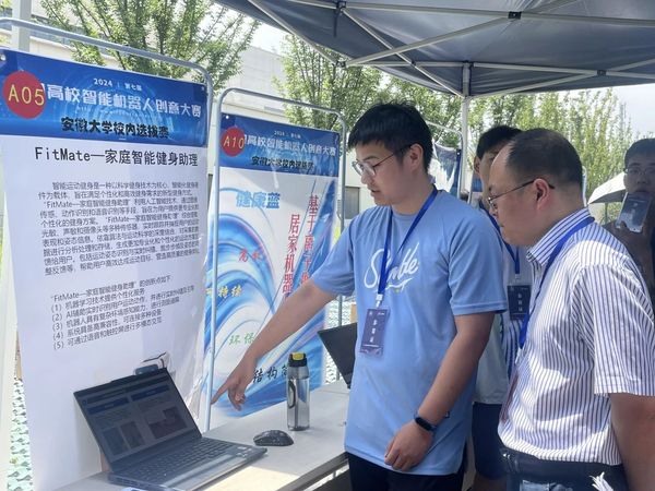 此次文化节活动现场分为科技成果展示区、AI知识挑战区和中国高校智能机器人创意大赛(安徽大学选拔赛)路演区三个区域。科技成果展示区内,可遥控操作的机器狗在广场上展示不同的动作、自动数粒机快速精准的数清一堆细小的绿豆、无人快递车向现场运送矿泉水、按摩理疗智能机器人现场展示理疗过程等,吸引广大师生前来参观体验。AI知识挑战区,有关“新质生产力、人工智能+”的知识问答、棋手对战游戏、集章打卡等活动极大地激发了同学们参与文化节的热情。路演区内,中国高校智能机器人创意大赛(安徽大学选拔赛)如火如荼的开展,各参赛队伍通过展板、PPT和实物演示等方式,向评审专家全方位展示项目内容。经过激烈的比赛角逐,本次大赛共评出一等奖12项,二等奖16项,三等奖30项。