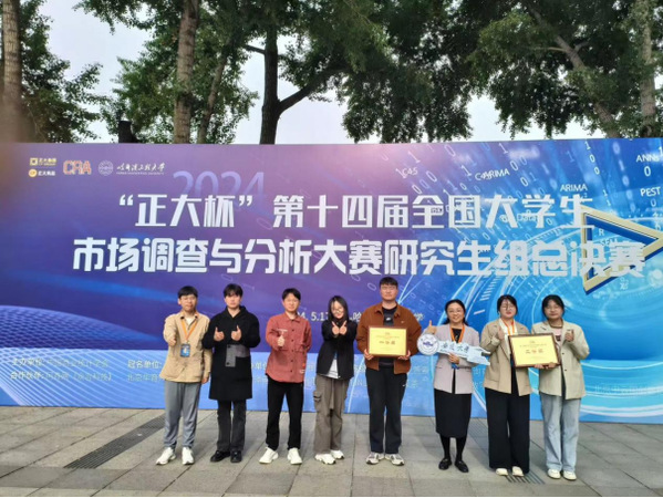 本网讯(大数据与统计学院 姚磊)第十四届全国大学生市场调查与分析大赛(研究生组)总决赛近日在哈尔滨工程大学举行。安徽大学大数据与统计学院两支研究生参赛团队参赛,姚磊老师指导的史志宏、崔颖佳、夏裕锋、朱小波、葛昊然团队获得全国一等奖,谭婧、陶志富老师指导的汪陈悦、陈欣雨、周一凡团队获得全国二等奖。