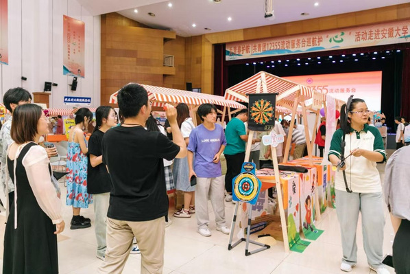 共青团12355流动服务台巡航护“心”活动5月12日在南京启动,历时半个月先后走进江浙沪皖4省(市)11个城市的相关高校。安徽大学站活动是本次活动的收官之作。活动由团中央维护青少年权益部指导,中国青年报社、团安徽省委主办,安徽大学团委、合肥团市委承办,中国青年出版总社、安徽(合肥)12355青少年服务台、安徽大学心理健康教育与咨询中心协办,新东方大学生学习与发展中心支持。