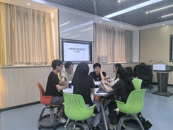 在分组研讨中,2023级班长们分成6个组,在辅导员老师和老生班长带领下围绕班级活动组织、班级文化建设等主题展开热烈讨论,就班长工作中的痛点和难点集思广益,相互启发。在集中汇报交流环节,各小组围绕“班集体建设工作的思考”分享了小组的建设方案。
