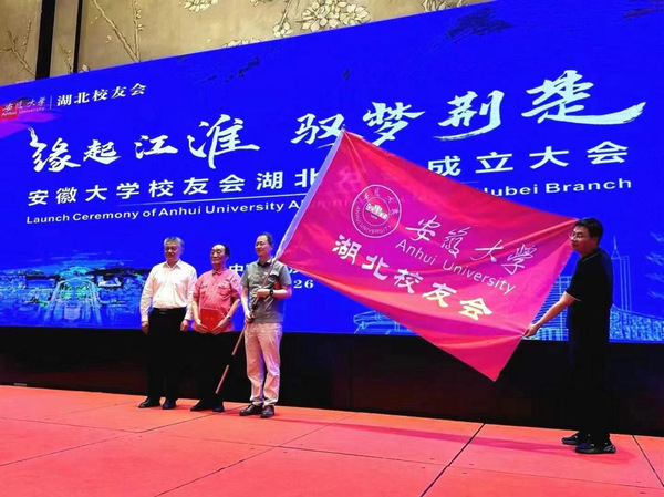 钱家盛向湖北分会名誉会长、会长颁发聘书、授旗,对湖北分会的成立表示热烈祝贺。他详细介绍了安徽大学“双一流”建设有关情况,勉励在鄂校友展望未来、凝心聚力,发挥湖北科教资源优势,瞄准校企合作切入点,搭建互惠平台,推动湖北与母校产教融合、科教融合发展,形成母校关心校友、校友回馈母校的互动双赢局面。