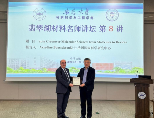 Azzedine Bousseksou,欧洲科学院院士、法国科学院院士、法国国家科学研究中心卓越研究员、法国国家科学中心配位化学所所长、安徽大学高等学校学科创新引智基地成员,主要研究方向为自旋交叉纳米材料,包括各种纳米物体(纳米颗粒、薄膜和纳米图案)的合成,及在有限尺寸效应范围内实验与理论分析及其于新一代纳米光子、纳米电子和自旋电子等器件的集成。他在Science、Chem. Soc. Rev.、Adv Mater.等期刊发表SCI论文300余篇,他引19340次,H-index 73 (2023年数据),已授权国际专利14项,出版专著4部。