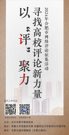 本网讯(融媒体中心)为讲好新时代网上“大思政课”,以优质内容做好思想引领、价值涵养,激发网上青春正能量,形成良好网络生态,引领广大网民与祖国同呼吸共命运,凝聚起更加团结奋进的磅礴力量,由中共合肥市委网信办主办,安徽大学党委宣传部、安徽师范大学新闻与传播学院协办,合肥日报传媒集团(合肥日报社)承办的合肥市第二届网络评论征集活动已正式启动。