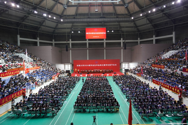 本网讯(融媒体中心 郑敏 周仲寅 岳怡涛 吕天祥)合欢花开,骊歌唱响。6月14日上午,安徽大学2024届毕业生毕业典礼暨学位授予仪式在磬苑校区体育馆举行。对2024届毕业生来说,是人生中意义重大的日子,八千多名毕业生和亲朋好友通过现场观礼和观看直播的方式共同见证这一重要时刻,祝福毕业生们自此向崭新的未来启程。