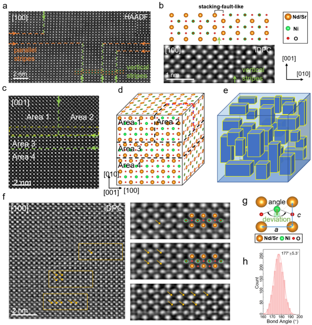 图. Nd0.8Sr0.2NiO2晶粒中的三维块状结构以及顶点氧导致的结构畸变