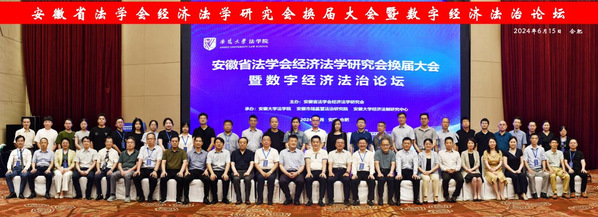 本网讯(法学院)6月15日,由安徽省法学会经济法学研究会主办,安徽大学法学院、安徽市场监管法治研究院和安徽大学经济法制研究中心承办的安徽省法学会经济法学研究会换届大会暨数字经济法治论坛在合肥召开。校党委常委、副校长高清维出席并致辞,安徽省法学会党组成员、专职副会长黄世斌讲话。会议举行安徽省法学会经济法学研究会第三届理事会换届选举,我校法学院副院长毕金平教授当选为理事会会长。
