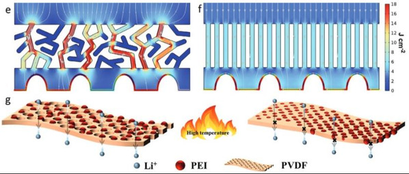 此工作设计的聚合物/无机复合隔膜的杨氏模量高达8.0 GPa,并能诱导钠金属电极表面形成富含高钠离子传导性无机物Na2SiO3且高模量高稳定的SEI层,组装钠金属电池展现出长的循环寿命,高热稳定性的该隔膜也使软包电池表现出高安全性。此前,该团队还成功制备了具备热球阀自动关闭系统的高安全性锂离子电池隔膜,相关成果以“A Thermal-Ball-Valve Structure Separator for Highly Safe Lithium-Ion Batteries”为题于2024年5月发表在材料领域TOP期刊《Small》上(DOI: 10.1002/smll.202309523),所设计的隔膜在温度升高到一定温度时,PEI颗粒会填充PVDF隔膜微孔,及时切断离子通路,使电池自动关闭,确保电池的高安全性,化学化工学院2021级硕士研究生骆梦宁为论文第一作者,化学化工学院侯之国老师和杨斌老师为共同通讯作者,安徽大学为第一通讯单位。